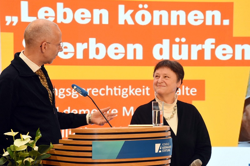 Dirk Müller und Assoc. Prof. Dr. Katharina Heimerl aus Wien, die zum Thema Zugangsgerechtigkeit für alte Menschen mit und ohne Demenz referierte -