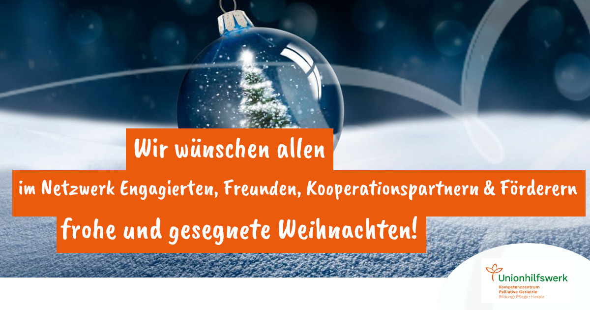 Das Kompetenzzentrum Palliative Geriatrie wünscht allen Mitarbeiterinnen und Mitarbeitern, Freunden und Förderern, Kooperationspartnern und natürlich unseren ehrenamtlich Engagierten ein frohes, gesundes, sorgenfreies und gesegnetes Weihnachtsfest!