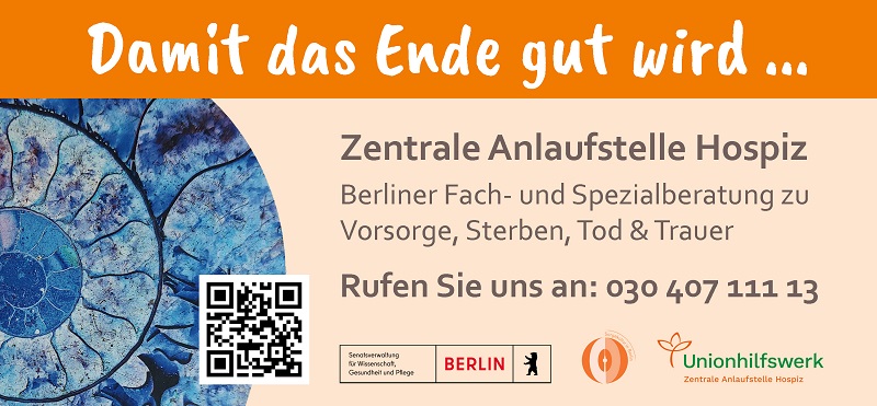 Seit 1997 unterstützt und berät die Zentrale Anlaufstelle Hospiz (ZAH) in Friedrichshain ratsuchende Berlinerinnen und Berliner, aber auch Institutionen und Gremien in allen Fragen rund um Vorsorge für das Lebensende, Sterben, Tod und Trauer. 1997 als Bundesmodellprojekt gegründet, ist die vom Land Berlin und dem Unionhilfswerk finanzierte ZAH damit die einzige Fach- und Spezialberatungsstelle zu diesen Themen in der Stadt.