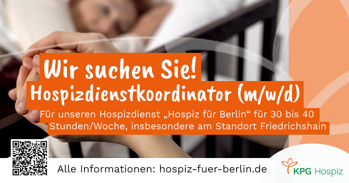 Für einen unserer drei Berliner Hospizdienststandorte, insbesondere den Hospizdienst Nord mit Standort Tegel, suchen wir eine/n Hospizdienstkoordinator (m/w/d) für 30 bis 40 Stunden/Woche.